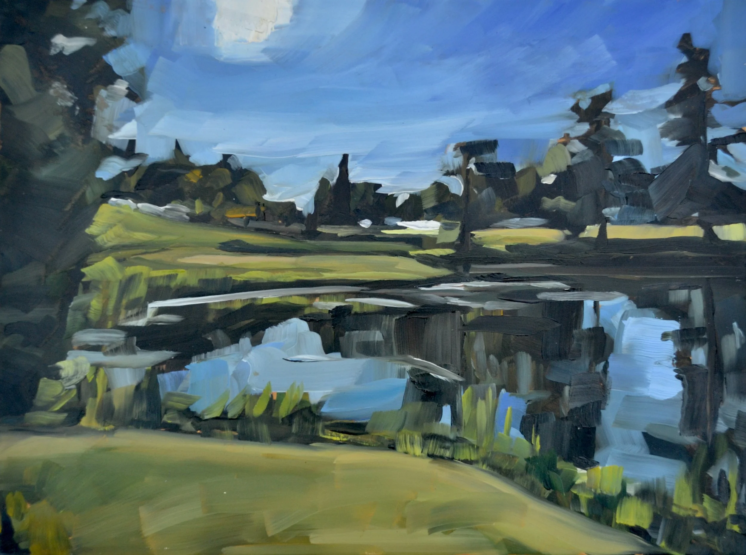 Georgina mainly works in oils using bold brushstrokes in a painterly style. Her loose but intentional mark making is suggestive of the forms within landscapes. She enjoys creating paintings that are more abstracted on closer look and which become more realistic and representative when viewed at a distance.
